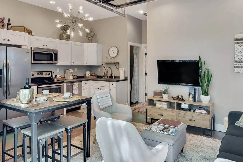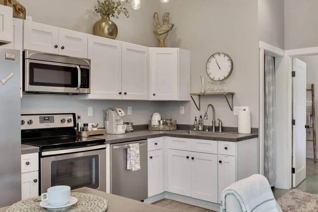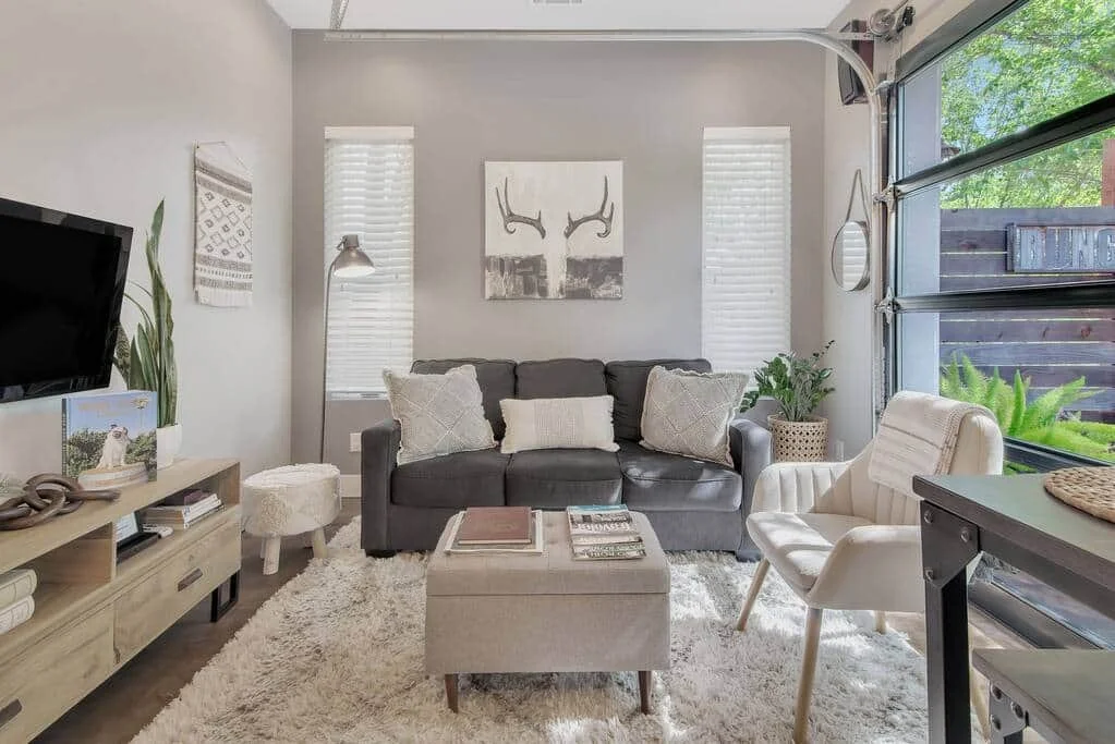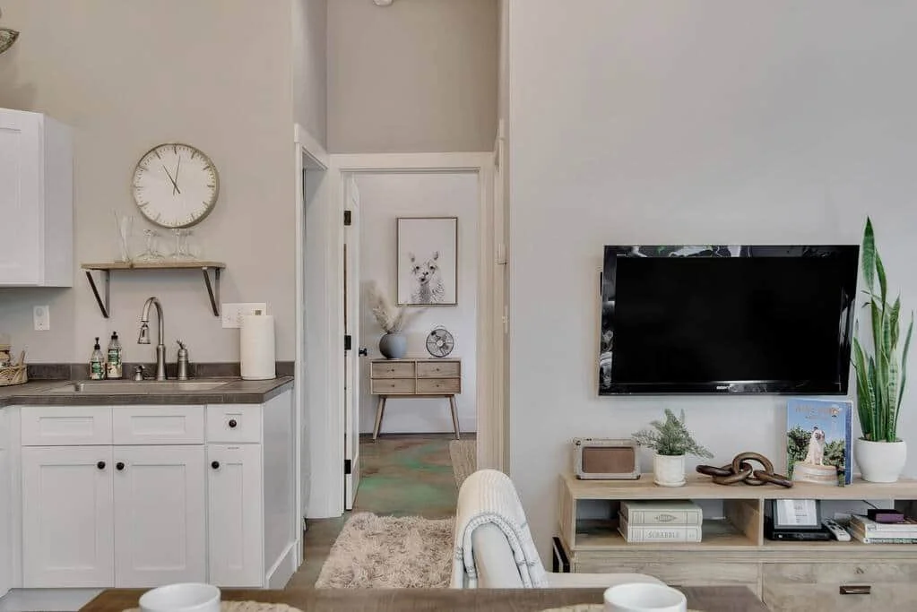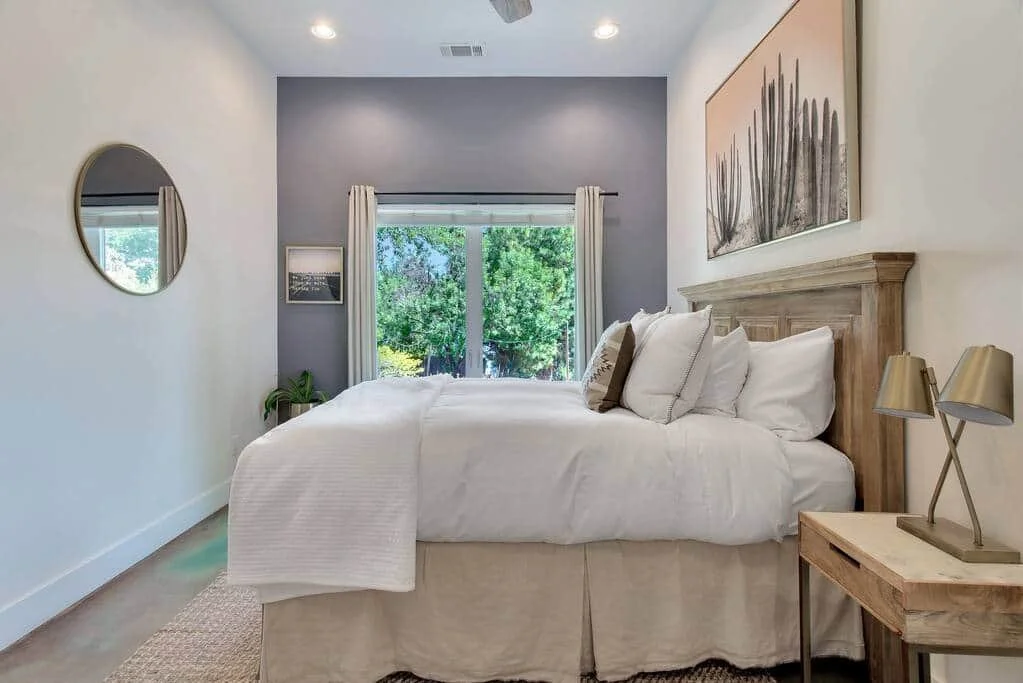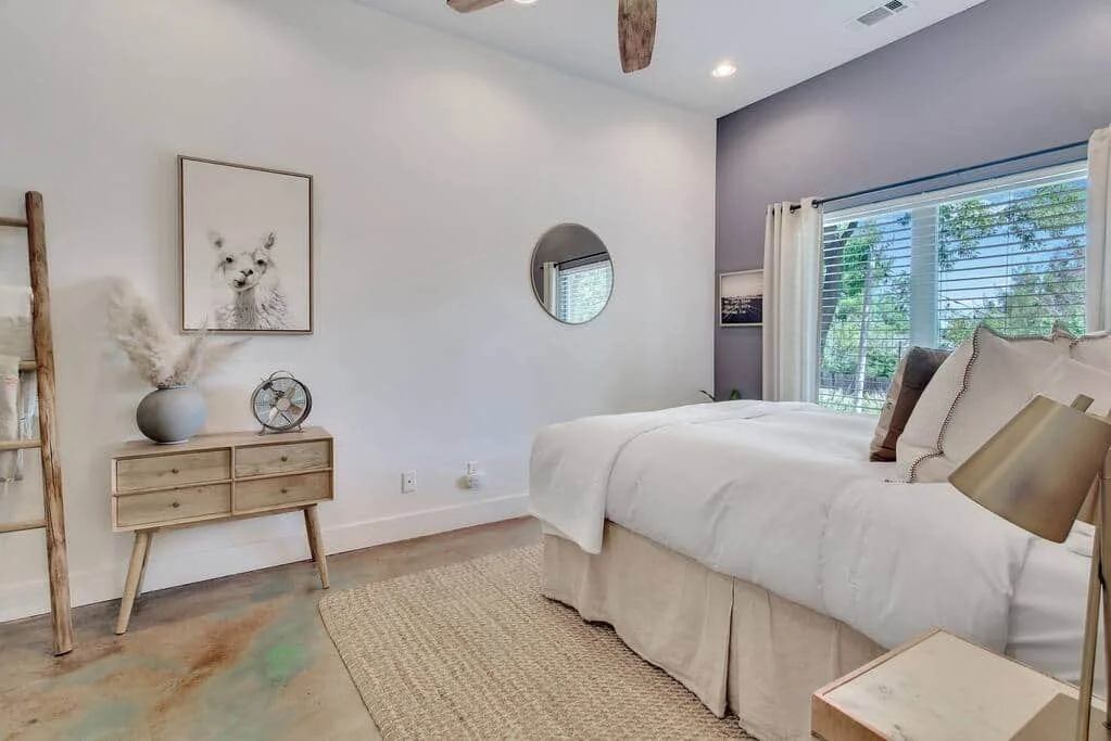 Stay in a private bungalow attached to a modern white farmhouse, blending urban country décor with all the comforts of home. Relax in the luxurious KING bed, cook in the fully stocked kitchen, or open the glass garage door to your own private patio with BBQ.