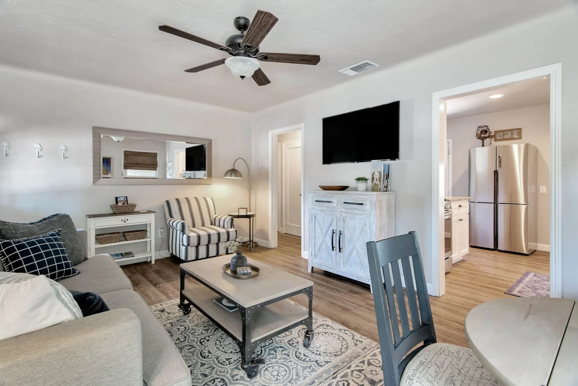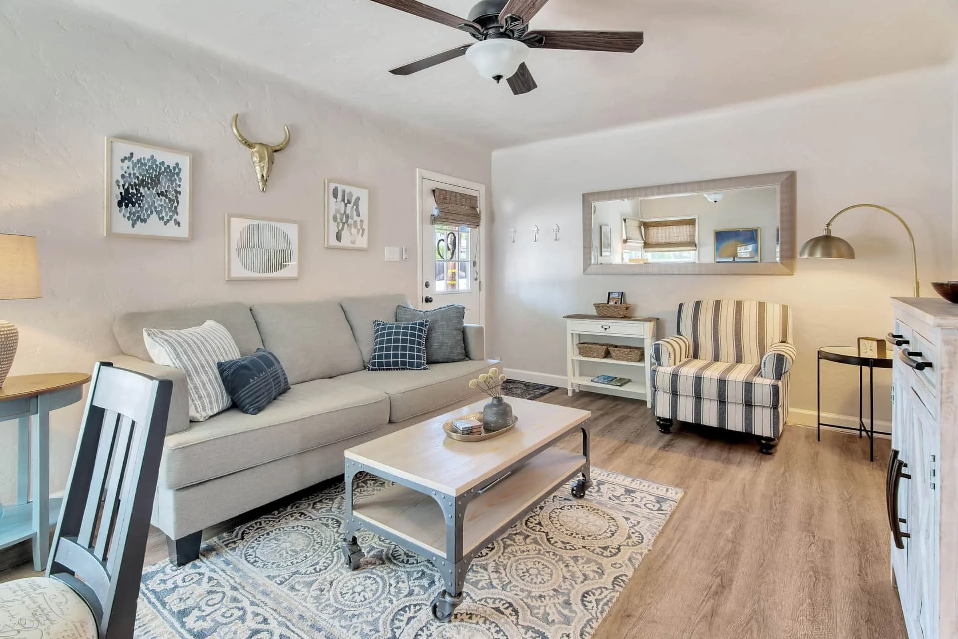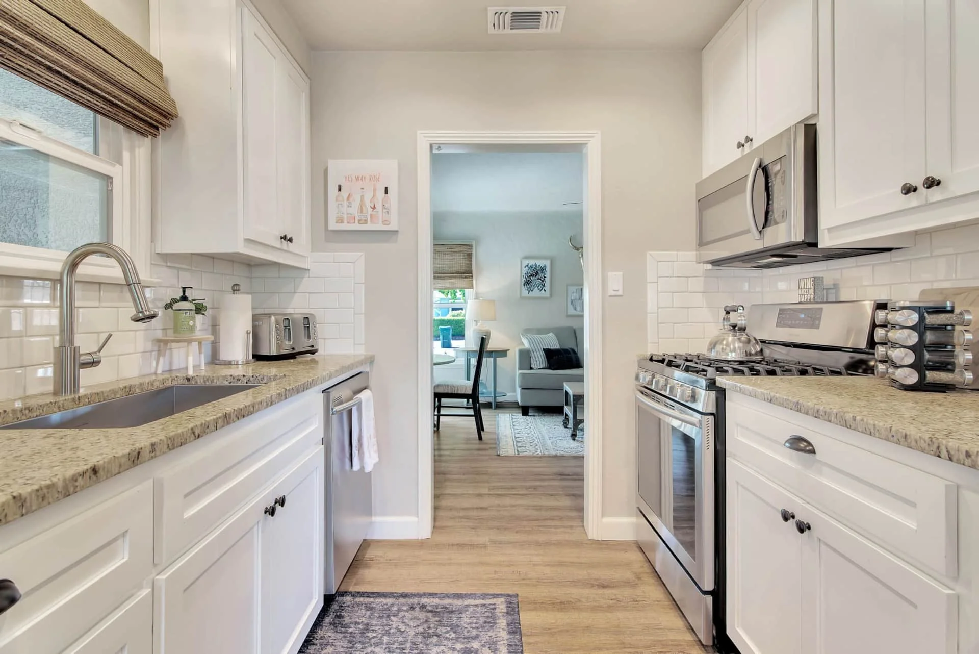 We use an easy, hotel-style system called Happy Guest. You’ll complete a rental agreement, quick ID verification, and a simple security hold online (not a deposit). Once done, your arrival instructions will be sent right to your phone, along with a digital guidebook full of local tips.