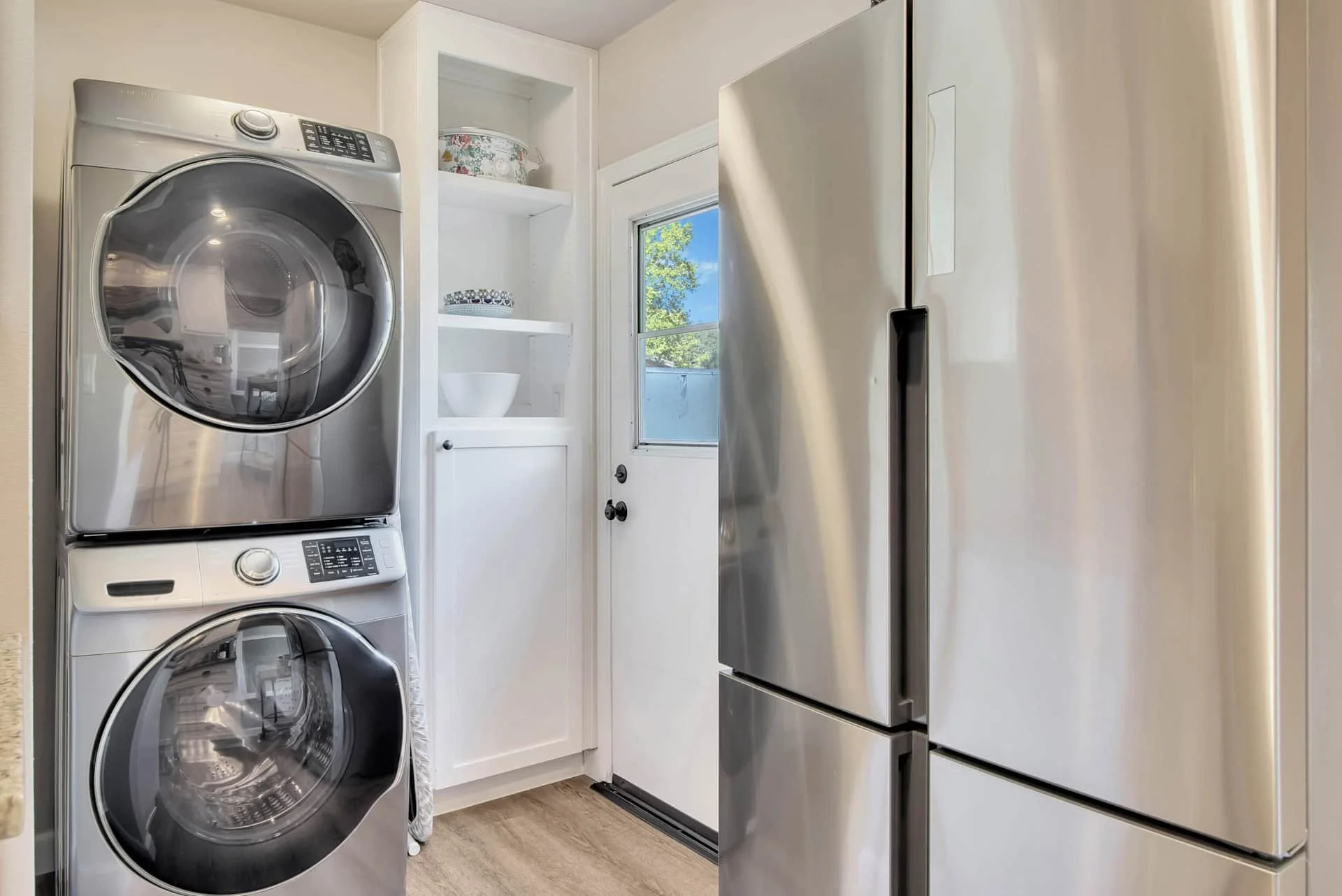 Tucked on a quiet tree-lined street, The Rosé Getaway blends style and comfort in the heart of Paso Robles. Inside, you’ll find two cozy bedrooms with queen beds, a bright living and dining area, and a fully equipped kitchen with stainless steel appliances. The bathroom is stocked with luxury towels and toiletries, while the washer/dryer makes longer stays a breeze.