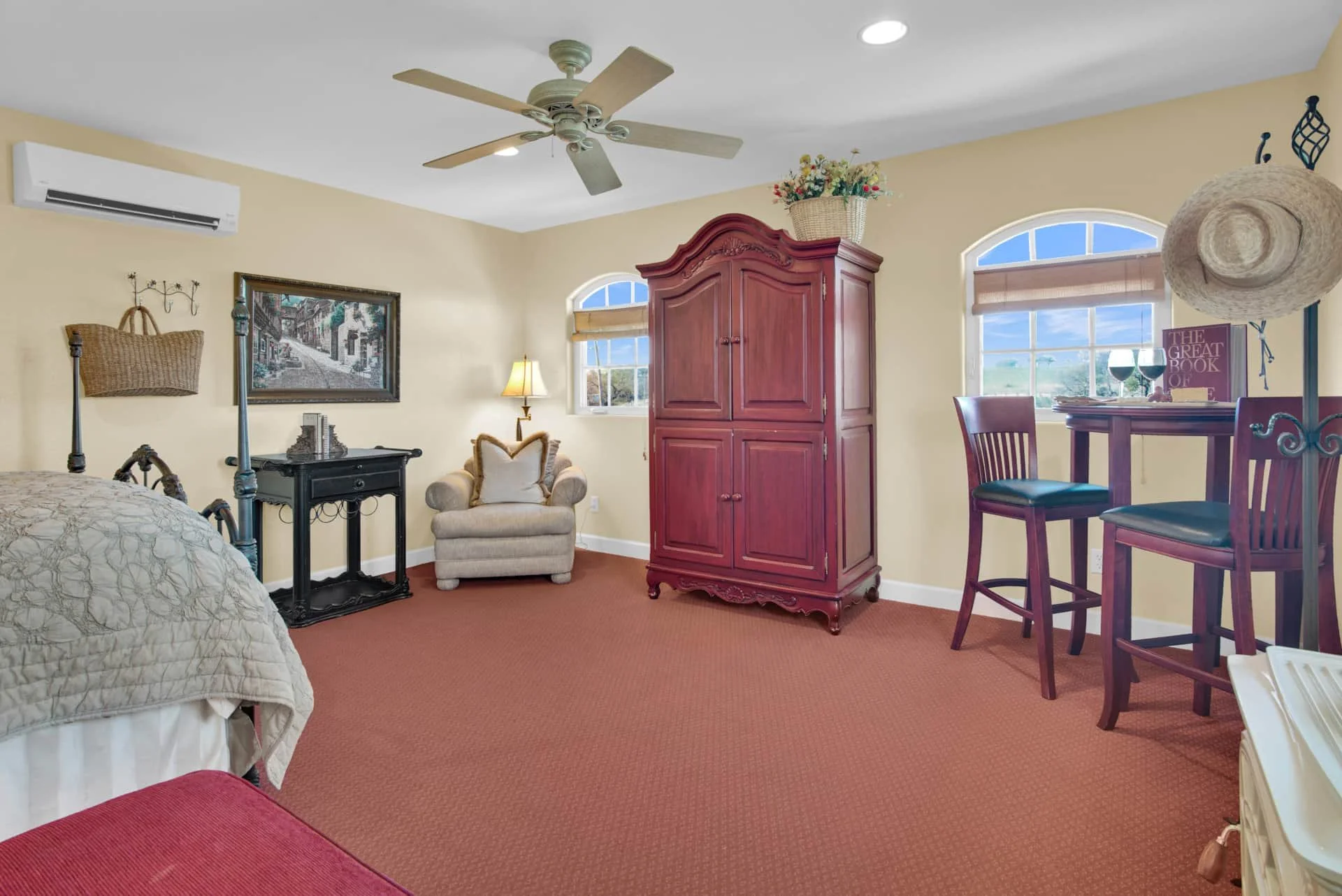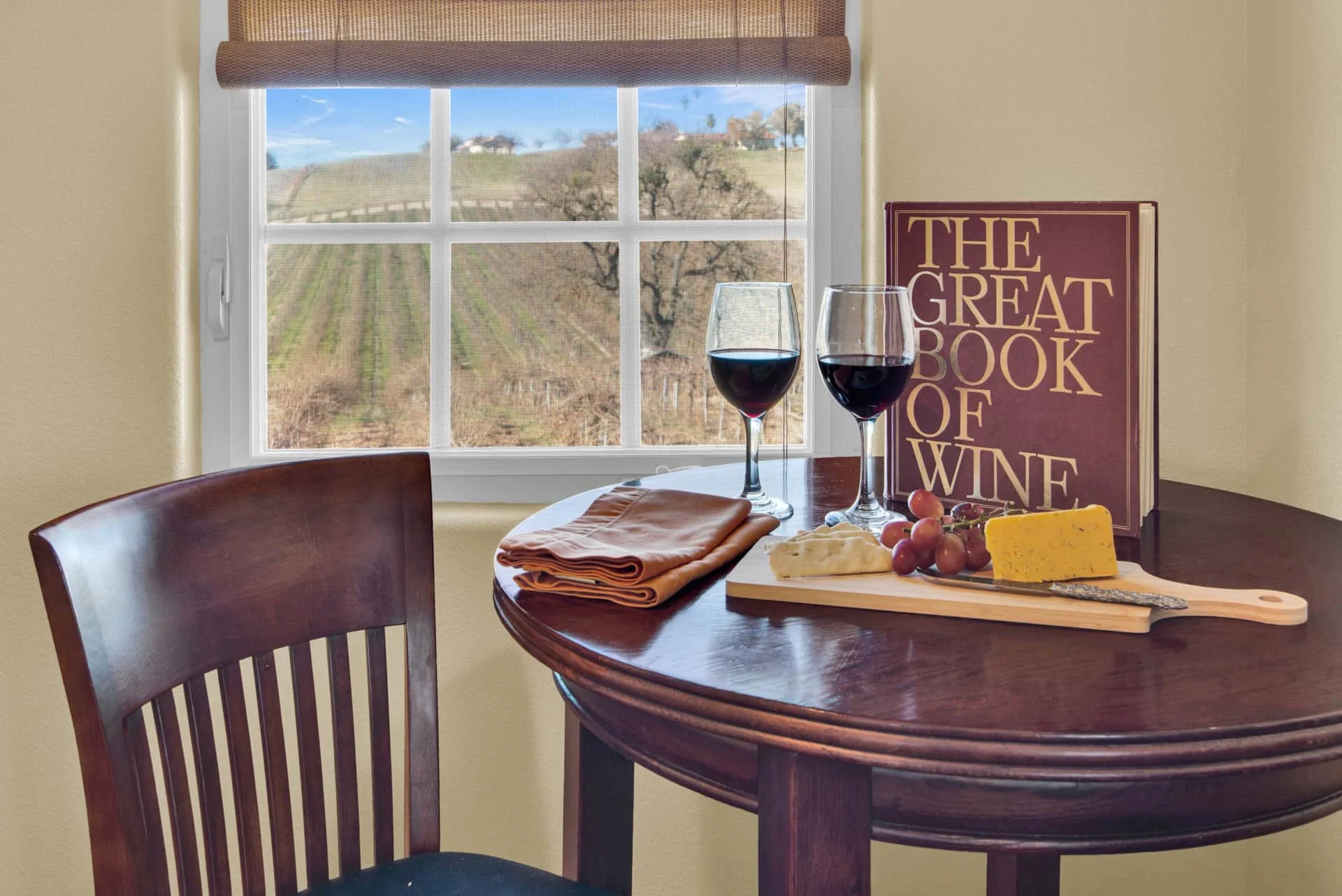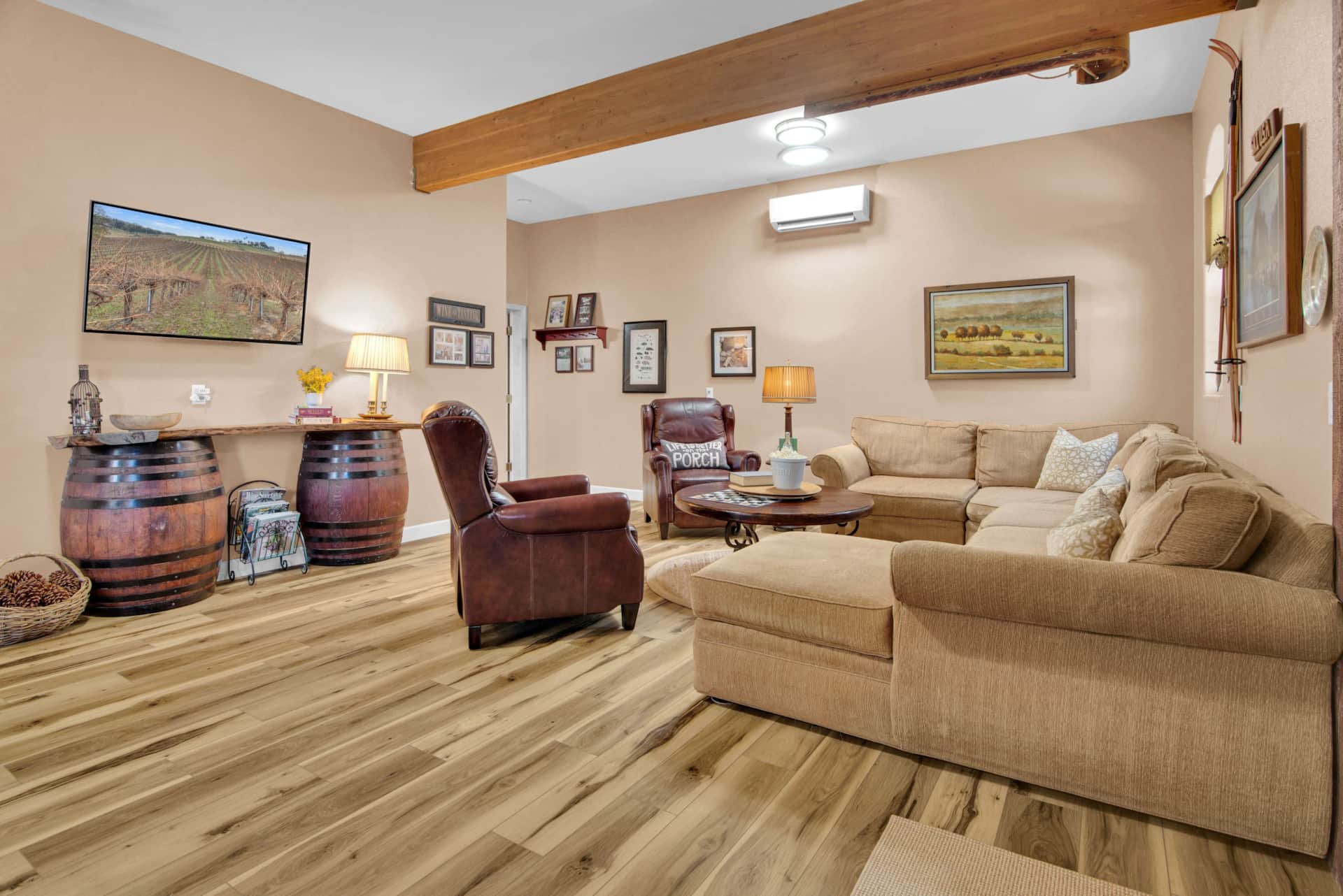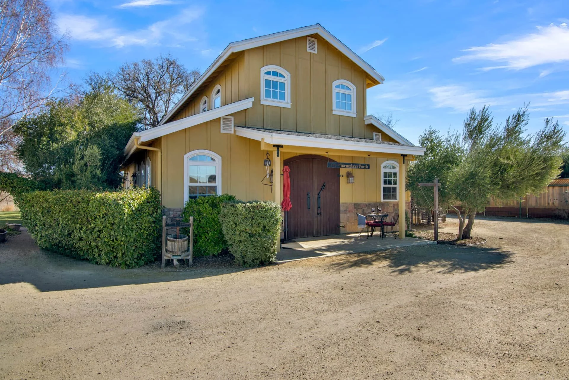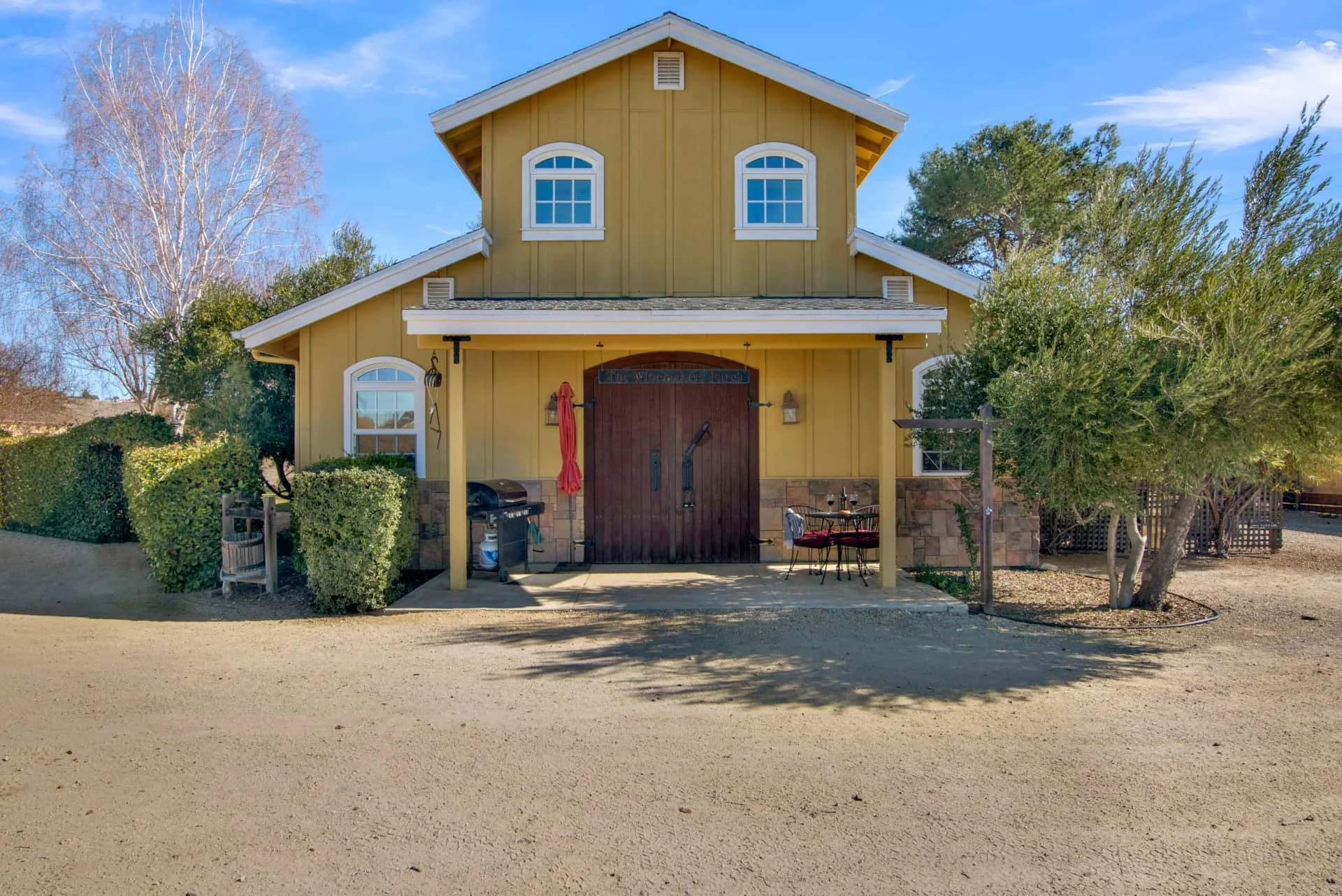 Step inside this beautifully converted barn-to-abode and enjoy spacious living areas, a fully equipped kitchen, and cozy bedrooms with ensuite baths. Outdoors, dine al fresco, gather around the fire pit, or wander through the vineyard rows just outside your door. Whether you’re sharing a bottle of estate-grown wine, playing a round of horseshoes, or simply taking in the sunset over the vines, The Winemaker’s Porch offers a one-of-a-kind Paso Robles wine country experience.