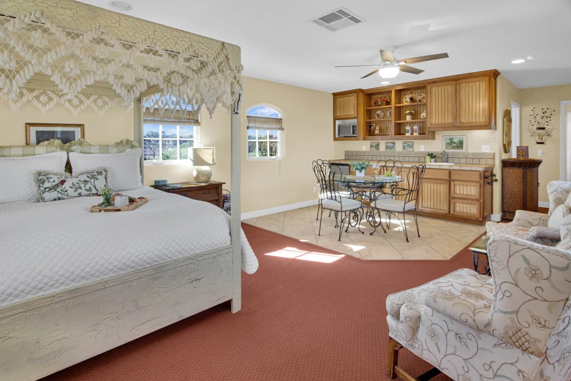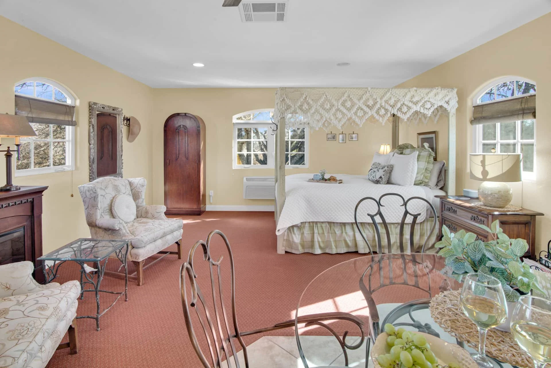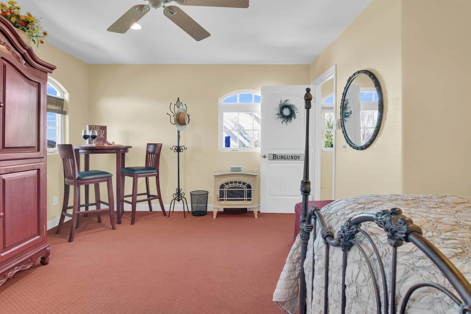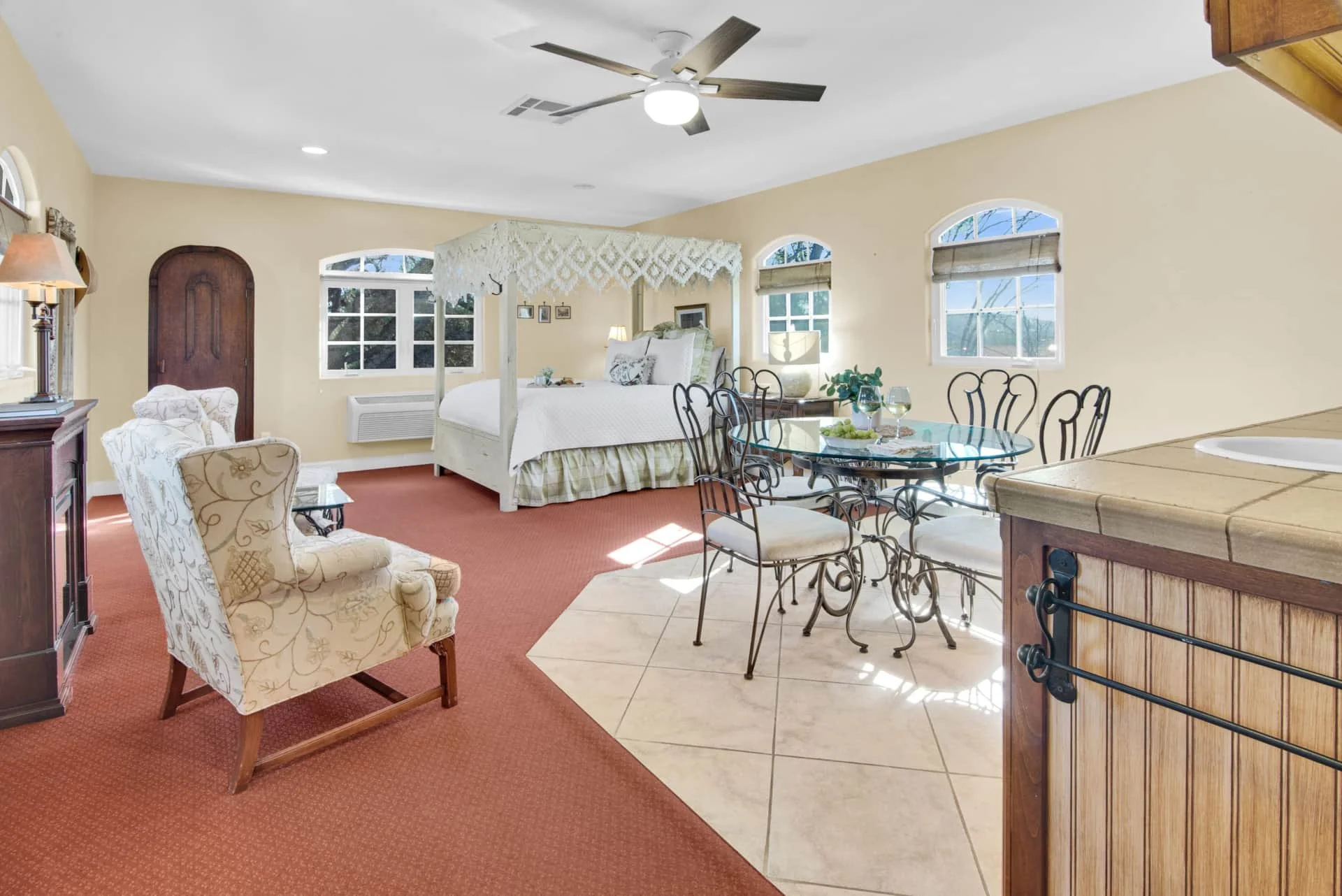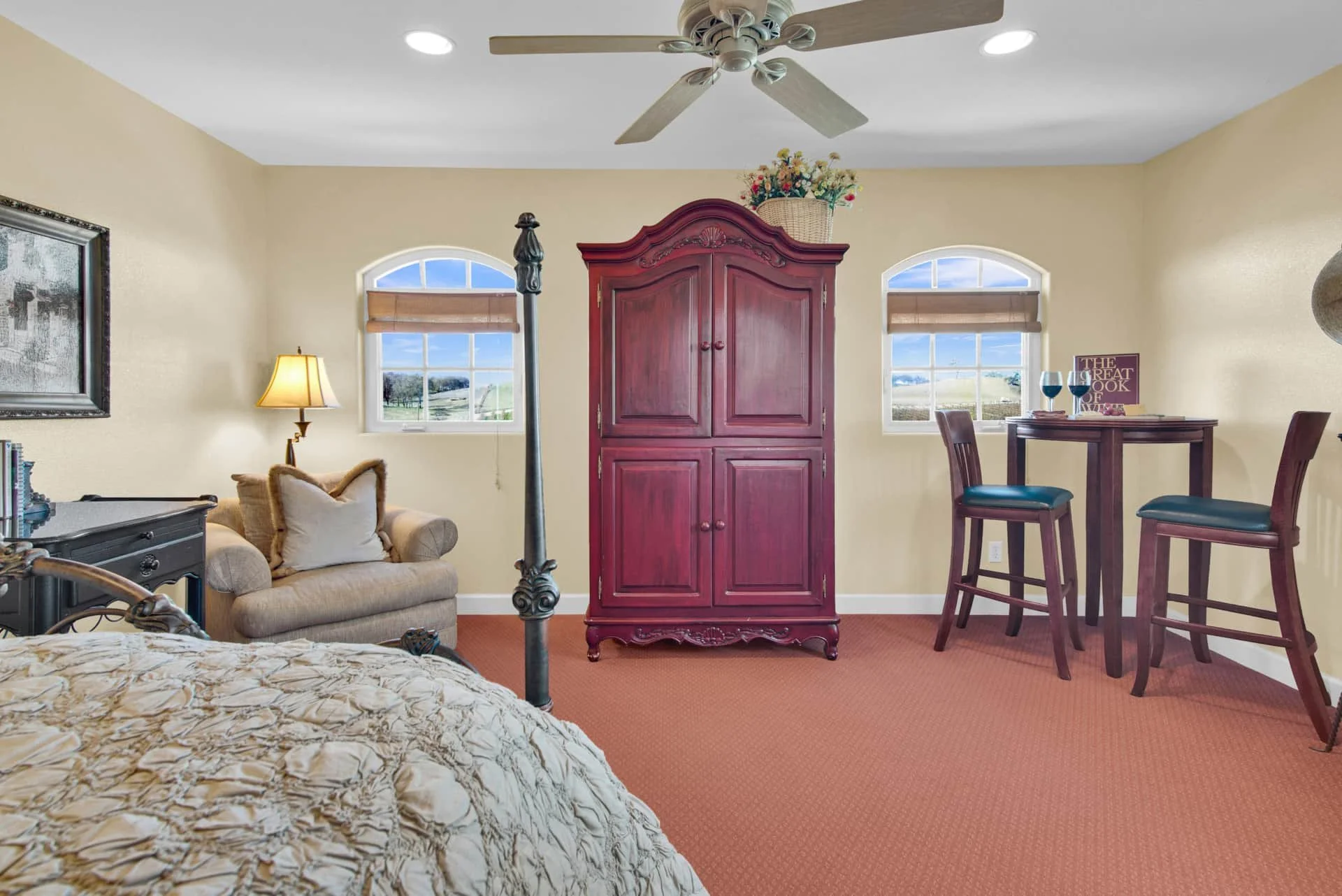 Step inside this beautifully converted barn-to-abode and enjoy spacious living areas, a fully equipped kitchen, and cozy bedrooms with ensuite baths. Outdoors, dine al fresco, gather around the fire pit, or wander through the vineyard rows just outside your door. Whether you’re sharing a bottle of estate-grown wine, playing a round of horseshoes, or simply taking in the sunset over the vines, The Winemaker’s Porch offers a one-of-a-kind Paso Robles wine country experience.