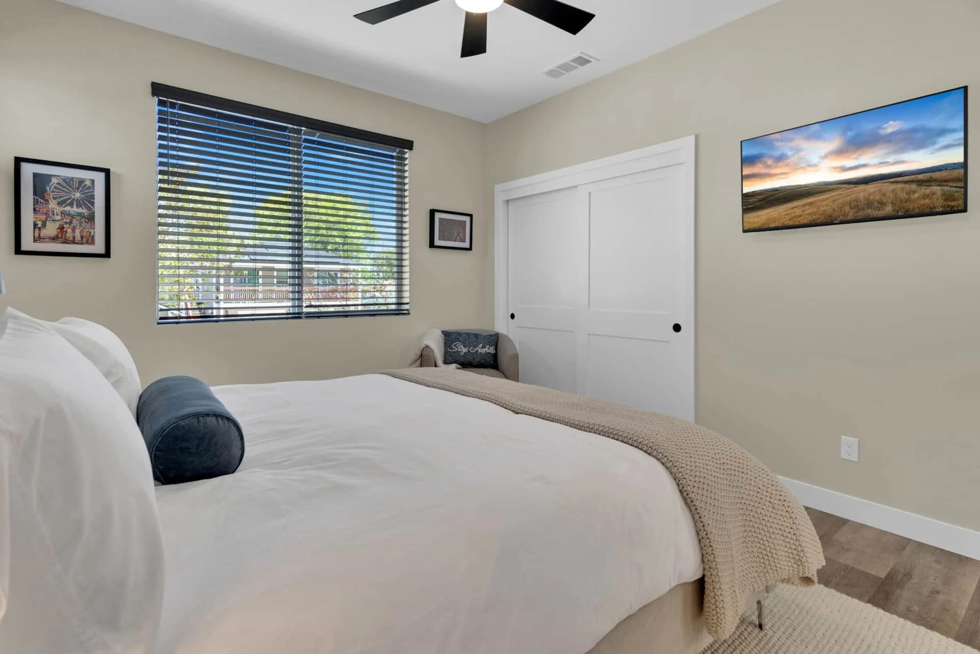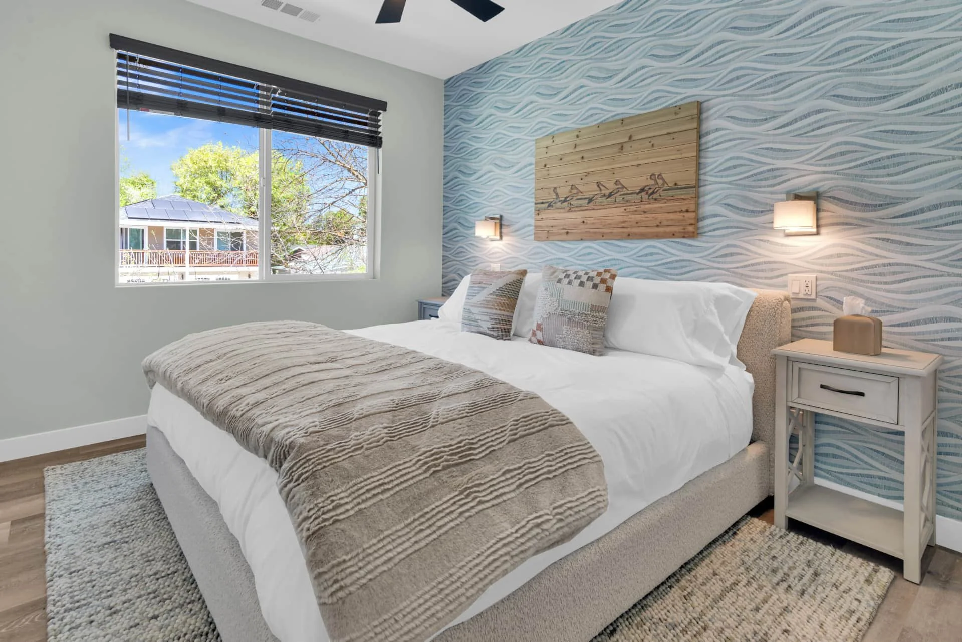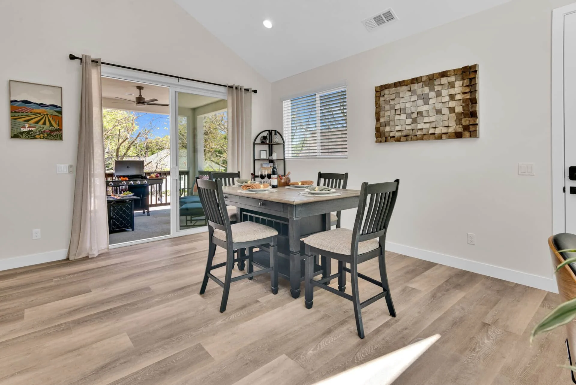 Outdoors, unwind on your private deck with a fire pit, BBQ, and lounge seating, or head downstairs to play corn hole and relax at the high-top table. With complimentary Wi-Fi, garage parking, and a location just blocks from Paso’s best dining, wine, and shopping, The Treetop Getaway makes it easy to experience the very best of Paso Robles.