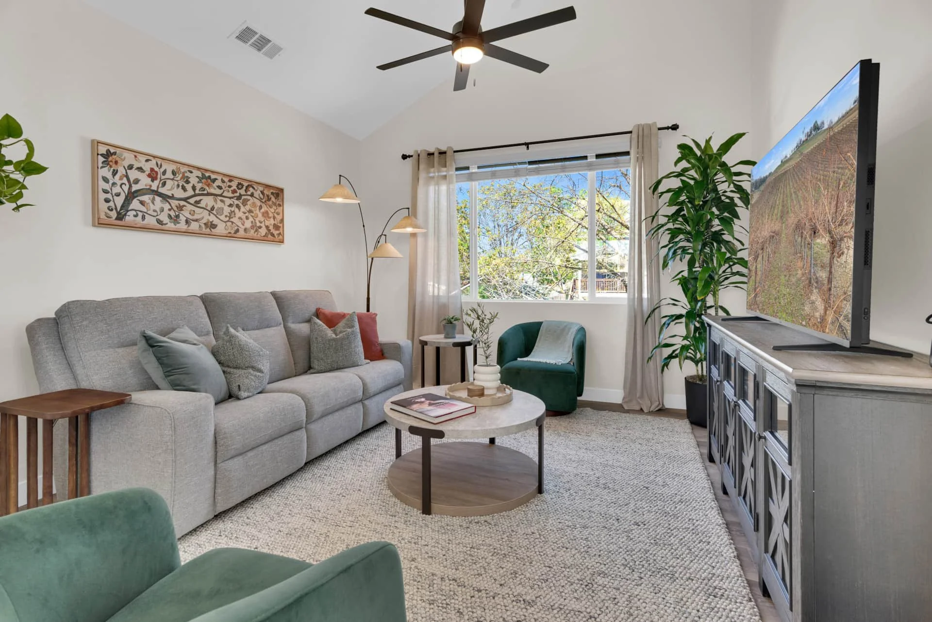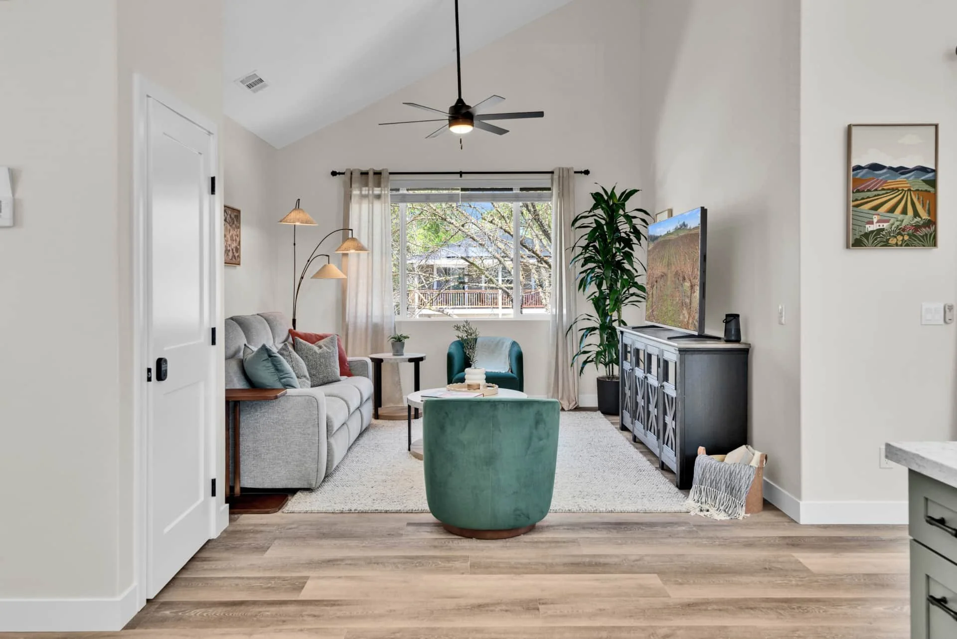 Perched beneath a canopy of trees, The Treetop Getaway offers the perfect blend of peaceful seclusion and central convenience. This newly built two-bedroom, two-bath home sleeps four guests and is located just one block from Paso Market Walk and minutes from award-winning wineries, craft breweries, and downtown tasting rooms. Whether you’re exploring the city or savoring quiet evenings on your private deck, this home is a wine country retreat designed for comfort and relaxation.